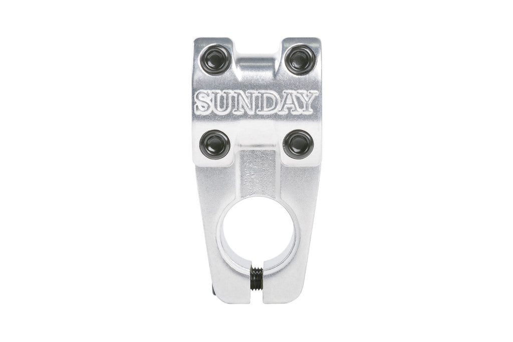 The Freeze top-load Stem uses a die-cast aluminum body with forged 6061-T6 aluminum face plate with embossed Sunday logo. It has recessed sides and bottom section to reduce weight. With Sunday's choices of materials and design, Sunday is able to offer the same stem used by the Sunday team at a very affordable price.